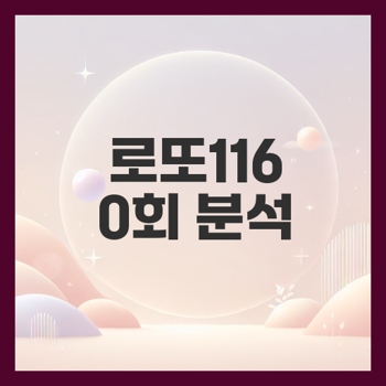 로또 1160회차에 대한 종합적인 분석 그리고 미래의 전략을 세우는 데 도움이 될 정보를 제공하겠습니다. 본 포스팅에서는 로또 1160회 분석 결과 요약, 추천 번호 제안, 다음 회차 대비 전략을 중점적으로 다룰 것입니다.